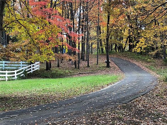This fabulous farm/horse property is hidden from the street and has over 8.5+ acres of privacy. First floor master suite, all bedrooms have sliders to decks. Large living room dinning room combination, high ceilings and skylights. 2 Bedrooms upstairs with office area over looking living room. Good sized eat in kitchen skylights and has view of farm. Finished space in basement with wood stove. Working barn with 5 stalls and wash stall, plenty of hay storage above. 45x25 foot workshop/garage and second level of storage galore. Wood stove heat in garage, tack room heated with baseboard hot water. Horse fence and riding ring with engineered drainage. Room to roam for the animals, 5 paddock areas. Garden area. House has large attached 2 car garage with attic pull down for additional storage. Update or move right into a working farm.