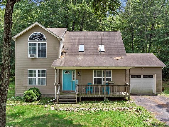 Looking for a full time residence or vacation home? This spacious property sits on 2 acres of serene land, offering over 1700 square feet of comfortable living space. With 3 bedrooms and 2 full baths, there's plenty of room for everyone. The loft area overlooking the living room creates an open and airy feel, complemented by a cozy gas fireplace and skylights that fill the space with natural light. The dining area features sliders that lead to a deck, perfect for enjoying the beautiful surroundings and entertaining guests. Additional features include a convenient 1-car garage and the advantage of not being located in an HOA, giving you the freedom to personalize your property as you desire. Embrace the peacefulness and possibilities this home offers, all while being just a short distance from the Pocono area's renowned attractions and amenities. Don't miss out on the opportunity to make this your own private retreat in this highly sought-after location!