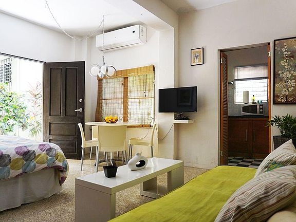 Studio apartment 4 blocks from the Ocean Park beach, located in a residential street. Close to Loiza Street which has restaurants, shops, supermarkets and access to buses to take you to Old San Juan, Isla Verde, etc. You can easily walk to Condado Center. The apartment is a freestanding structure on a property that houses other apartments that we live/ manage. The apartment is completely equipped, it has a Queen size bed and a sofa-bed. The kitchen includes all essentials. We include beach towels, beach chairs and a cooler for you to take to the beach. We also provide WIFI, TV and DVD player. All utilities are included in the rental fee and no smoking, no partying, no late night gigs. Pet fees at $300 one time fee. One assigned parking space.