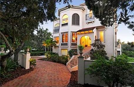 Reduced.Bayfront in the Oaks. Custom designed walled Mizner-style estate in private cul-de-sac location with a 5 stop elevator. Views from several areas showcasing the gulf and bay. Very livable floor plan with expansive master suite offering a separate sitting room and octagonal bath all separate on its own level. Upstairs guest area has its own media room and small bar. Solid wood doors, extensive woodwork and built-ins, impact doors and windows, top floor sun deck, hand carved stone fireplace and entry columns lend a distinctive elegance to the house. Shellstone entry of 14' vaulted ceiling, banked by French doors and windows overlooks a suspended pool deck above the back lawn and preservation area. Kitchen features Sub-zero, Asko dishwasher and new island cooktop surrounded by granite. Small wet bar with wine refrigerator is adjacent to the living room and family area. This home is filled with light and the privacy and quiet is unmatched. Canoeing and kayak water to the back, no dock allowed. A spectacular location in the top country club in Sarasota which features 36 holes of golf, tennis, bocce ball, croquet and a new fitness center plus gourmet dining in an active social community. Membership in the Oak's Club is required.