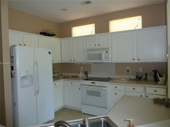 The most popular model in Sun City history strikes again Wonderful panoramic views of tall trees and a lagoon on the 4th Fairway of Okatie Creek GC. The kitchen and Master Bays add character and overlook all of the above. Beautiful paver driveway and entry. Wood floor in Great Room in front of marble surround gas fireplace and built in cabinet. All glass Carolina Room where you will live, day after day. Raised vanities and Cultured marble surround tub and shower. Hobby Room w/overhead cabinets. Coated garage floor w/laundry tub/washer/dryer. Newer Refrigerator. HVAV replaced in 2015.