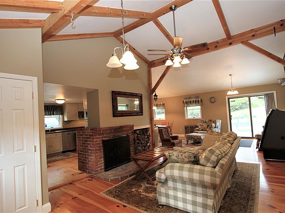 Historic home with breathtaking panoramic views of the Green mountains. This 3 bed/2 bath home has old world charm, beautiful exterior stone work with modern updates, including a custom kitchen with granite countertops, large master bedroom with walk-in closets and private balcony, and open concept floor plan with vaulted wood beam ceilings. Entertain guests on the large deck or patio and enjoy the views and smores around the firepit.