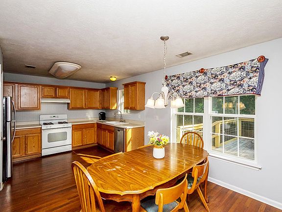 Tucked away on a quiet country road you will find your great escape! Situated on almost 7 acres of paradise this beautiful ranch home greets your guests with a welcoming rocking chair front porch and plenty of room to roam on a wooded lot where wildlife abounds. The home opens up to a beautiful living room centered around a masonry fireplace accented with a handcrafted mantel. An open kitchen offers ample cabinet and counter space and connects to the dining area which overlooks this gorgeous acreage. The large owner's suite easily accommodates large furnishings and has its on en suite bath featuring a separate shower, linen closet and relaxing jetted tub. Enjoy the peace and tranquility of country living on a newly updated deck that is perfect for entertaining friends and family. A world away, but just 10 minutes from the interstate, shopping and dining. 100% USDA financing available to qualified buyers!