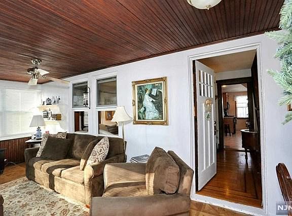Charming three bedroom colonial in terrific location across from Dumont's Memorial Park! Beautiful stained glass window, hardwood floors and trim throughout! Entry foyer/enclosed porch, living room, formal dining room, modern kitchen w/dishwasher. Upstairs three bedrooms and bath. Convenient walk up storage attic. Basement is full and unfinished. One car garage and plenty of parking. Fenced yard. A picture perfect home!