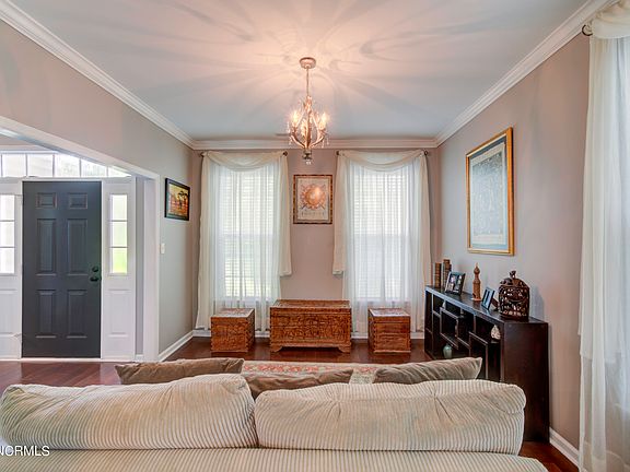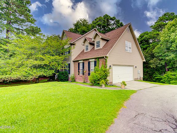 Welcome to the Landing at Hunters Creek. This beautifully renovated home boasts four large bedrooms,two and a half bathrooms, a chef's dream kitchen with stainless appliances, including a four-burner with center skillet Viking gas stove and a breakfast counter and nook, a formal dining room, a den, and a living room with a fireplace. This home has recently been painted to include all walls and ceilings, newer flooring recently installed, a new roof in 2018, HVAC systems in 2022, and an energy-efficient water heater. This home is not just a house, it's a home ready for new buyers to move in and start creating memories, without having to worry about renovations or updates! The home also features a large porch overlooking the large tree-lined backyard. The landing at Hunters Creek includes amenities like a community pool, clubhouse, and boat ramp. This property is located minutes from Camp Lejeune, Camp Johnson, MCAS New River, Jacksonville's shopping and dining, and the beautiful beaches of Topsail Island and Emerald Isle.