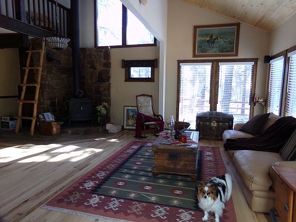 Lots of character, not cookie cutter. Beautiful Pecan hardwood floors and Aspen tongue and grove ceilings. Beamed ceiling, new walk-in large shower, With over an acre you could build a He-Man Cave Workshop, She Shed, Greenhouse, or Mother-in law Home. House was set up as passive solar, in the summer open upstairs doors natural air cooling. French drain, guttering for rain barrel and fenced yard for dogs, deer and elk (cats won't stay in). Fire pit and garden area. Crawl space has lights, room enough to almost stand up and most has wood down. Walk-in Attic 210 sq.ft., workshop w/220 210 sq.ft., locked storage 35 sq.ft., third bay for golf cart, motorcycle, etc. Potting shed 28 sq. ft and 181 sq. ft. storage shed attached at back.