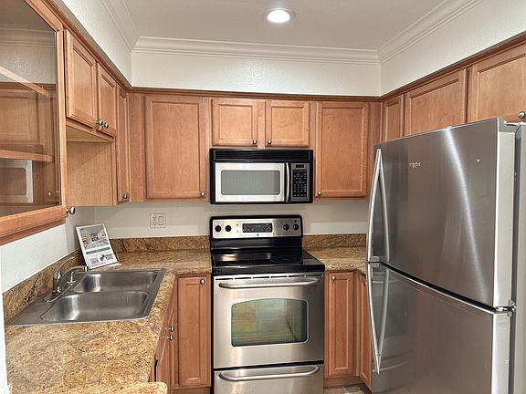 Upstairs condo at highly desirable San Ramon Crestview Community. Beautiful unit is light and bright offering vaulted ceilings. Situated next to golf course and open space with the patio overlooking mature trees and lawn area. Well appointed features throughout to include: Granite countertops in kitchen and bathroom, stainless steel appliances, brand new refrigerator, cozy wood burning fireplace, in-unit laundry, new carpet and paint. Great community with unbeatable amenities: 24-hour gate guard, heated swimming pool and spas, club house, gym and lighted tennis courts. Top-rated San Ramon Unified School, parks, restaurants, shopping and trails are just steps away. 12-month lease required. Owner pays HOA, trash and water. Renter pays PG&E, internet and cable. First month and deposit is due at signing. Allowed up to 2 small pets/unit. No smoking unit. Required documents: - Most recent 2-month paystubs - Completed and signed application form - Driver license - Renter insurance