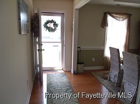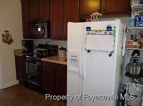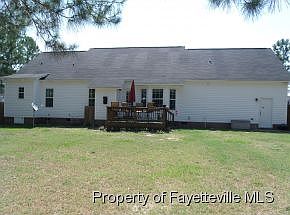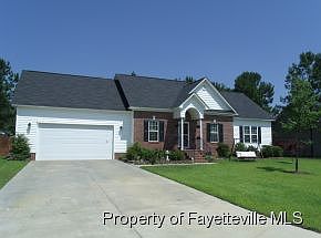 Very nice 3BR/2BA home with bonus room (that could be used as 4th bedroom--it has a closet). Home is in Harnett Co, but is just over the Cumberland Co line. Arched entryway leads to the hardwood foyer and formal dining room with trey ceiling. Kitchen has cherry cabinets, a bar that overlooks the great room and a breakfast area with a bay window. Great room has cathedral ceilings and gas FP with marble surround. Deck, Privacy fence and custom built shed on a concrete slab in the large back yard.