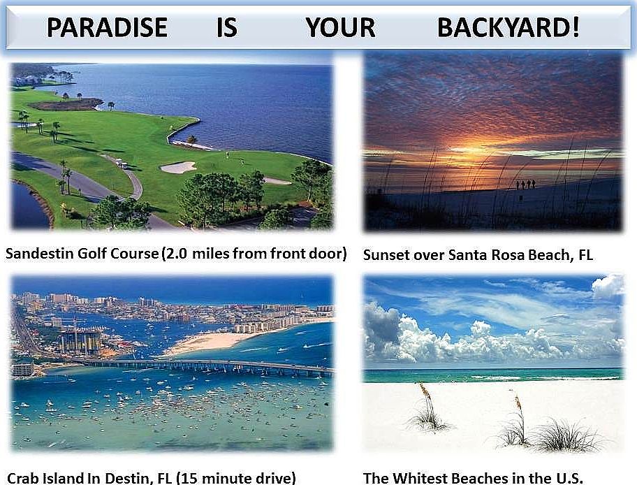 3 bedroom/2.5 bath home in gated community, conveniently located in Santa Rosa Beach and zoned for excellent schools. This home features crown molding and travertine tile flooring on the main level with granite countertops in kitchen. Master bedroom is located on the 3rd floor with his-and-her sinks and a sit-in master shower. This home minutes from the finest sugar white beaches In the World, next-door to the world-famous Sandestin Resort and Golf Course, and 4.5 miles to one of the nation’s largest outdoor shopping outlet mall. This community features a large pool and weekly lawn-maintenance.
