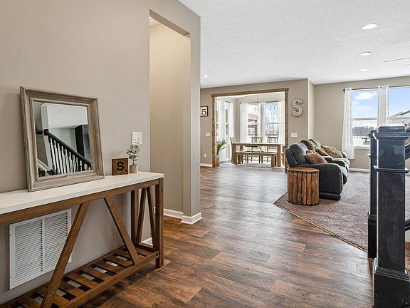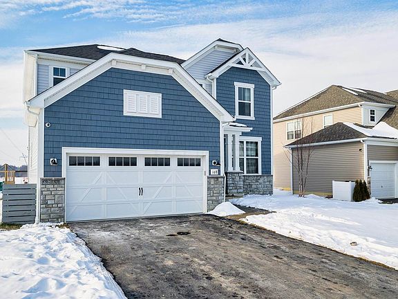 Why build when you can move right into this stunning new build! This masterful home has been immaculately cared for & improvements made since first built in 2018. Enjoy cooking in your fully open kitchen w/ subway tiled backsplash, shiplap wrapped kitchen island leading to spacious sunroom. Enjoy cozy nights in w/ new electric fireplace & get excited to entertain on your backyard oasis filled w/ newly stamped concrete patio w/ white marble flower beds, wood deck, pergola & hot tub when the warm weather hits! Large loft & laundry on second floor w/ spacious bedrooms & gorgeous master suite. Basement w/ egress window just finished w/ new flooring & paint that is perfect for add'l bedroom, bar & entertainment space. Community pool, bike/walking path just steps away. Do not miss this one!
