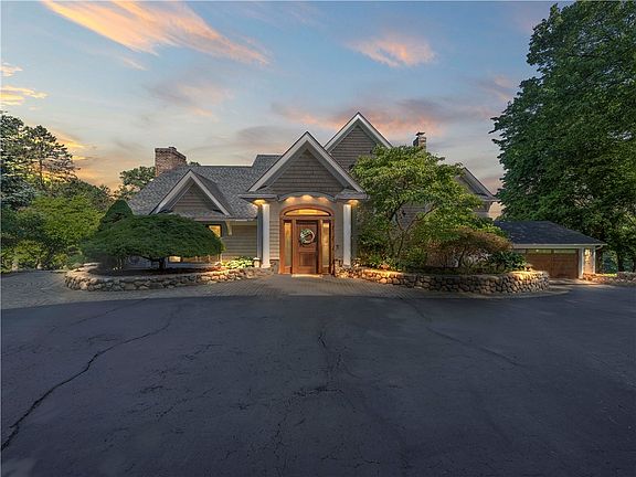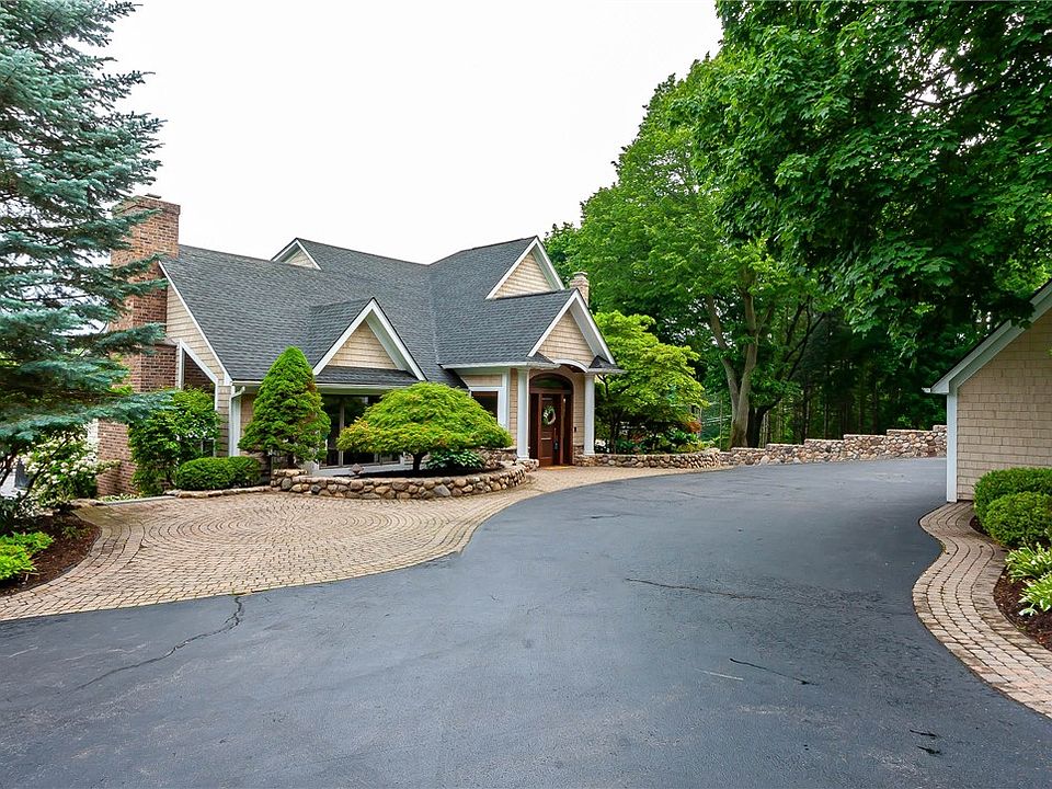 What began as a hunting lodge has been brilliantly blended into this 5-bedroom, 4-bath home on 3.4 acres! A Carver Creek custom designed kitchen overlooks breathtaking sunsets, including the recent sighting of the Northern Lights! Multiple Subzero appliances, Wolf oven/range with built-in griddle, plus more features to make it functional & timeless. Several upgrades include new heat/AC mini splits, new boiler, & Tesla charger to compliment the 6-car garage. Walk-out basement has full bath leading to the expansive backyard, installed with invisible pet fence. Located on the highly desired Fisher Road in the Pittsford School District just walking distance from exciting trails & pickleball courts! Less than 5 minutes to great shopping, restaurants & the thruway making for a pleasant commute to anywhere! Truly an entertainer's dream & just as dreamy for homebodies to relax in front of the grandest stone fireplace, under a cathedral ceiling with hand-hewn timber beams! Tour this house for a chance to show every other spectacular feature, there's plenty! Additional acreage can be made available, ask agent for details. SEE VIDEO LINK. Delayed NEGOTIATIONS: Offers due Tues. 7/16 at 2 pm.