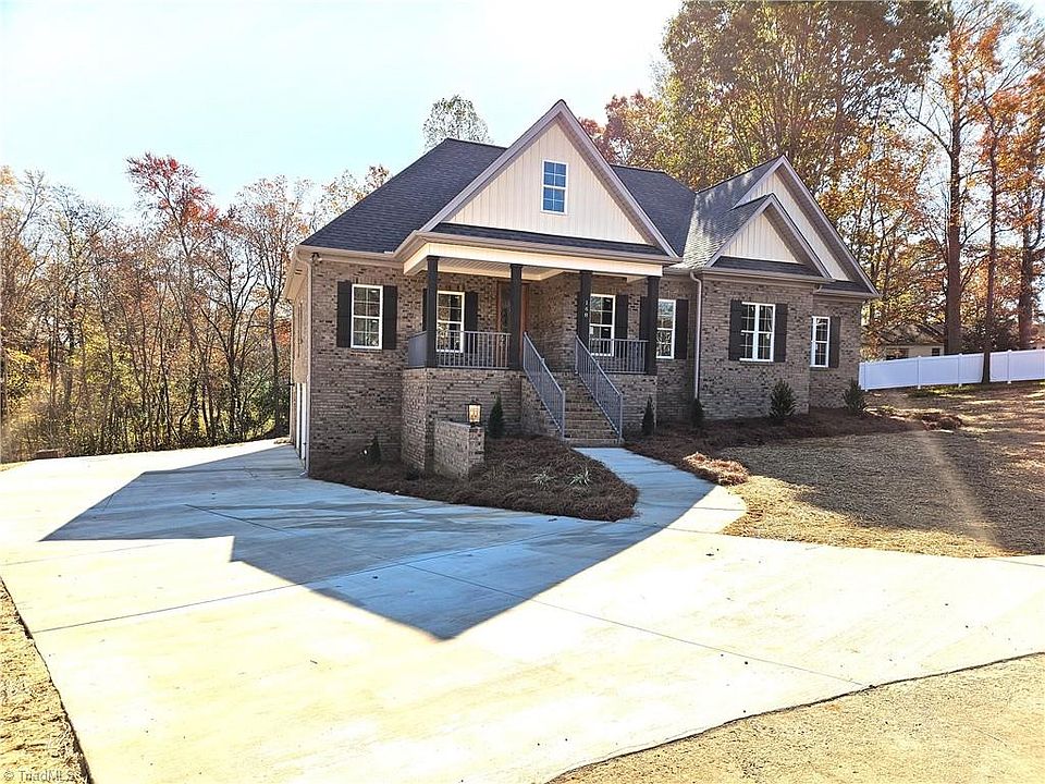 New custom brick 4 bedroom/4 bath home in Wellington subdivision in King. Home boasts a full basement with lifetime waterproofing, oversized basement garage, soundproofing between floors, insulated garage doors with wifi capability, Low-E windows, custom built shutters, powder coated handrails on front, 9 and 10 foot ceilings on the main, and 9 foot ceilings in the basement. Den in basement would make perfect theater room. Come check out the upgraded features on the home with the extra storage that comes with having a basement. Home is move in ready!