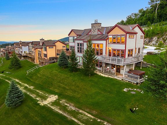 The first Topridge Townhouse to come on the market in over two years! This unit sits slopeside directly on the ski trail with stunning views of Devil's Fiddle and the Dream Maker Half Pipe. Step out your door directly onto the ski trail and start your adventure right from the doorstep. Ski or ride home for lunch leaving your gear in the custom built oak cubbies. This three story townhome has two ensuite bedrooms on the third floor. Wake up in the primary with its walk-in closet, double sinks and a jacuzzi tub and watch the sun come up over the mountains. The open concept living, dining and kitchen all flow together beautifully, providing the perfect space for comfortably entertaining your guests for cocktail or dinner parties. The living room with its cathedral ceiling and fieldstone fireplace invites family and guests to gather around the hearth while gazing out the floor to ceiling windows at sweeping mountain views. In the evening, sit by the fire and watch the lights as the groomers traverse the slopes. Looking for a more cozy hangout? The downstairs den is perfect for a relaxing night of television or billiards or an evening in your slopeside private hot tub with more views of Bear Mountain. All Topridge owners are members of the Sunrise Sports Center, with indoor and outdoor pools, ice skating, hiking/snowshoe trails, a seasonal restaurant and more!
