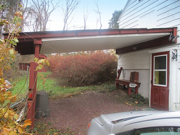Cozy Ranch on .83 Acre Parcel Waiting For a New Owner! Cute as a Button 2 BR Brick & Aluminum Sided Home Offers Spacious Kitchen and Dining Room with lovely patterned wood ceiling. Living Room Has Charming Built-in Bookcase. Central Air. Roomy Covered Front Porch Has Plenty of space For Some Perky Outdoor Furnishings Where You Can Relax Away. Lot is Level to Sloping with some nice Landscaping. Replaced Roof, Hot Water Tank and Central Air. One Car Integral Garage. Nice Wood Shed Great For Storage. Gas Grill Included. Also includes stove, refrigerator, washer and dryer!!