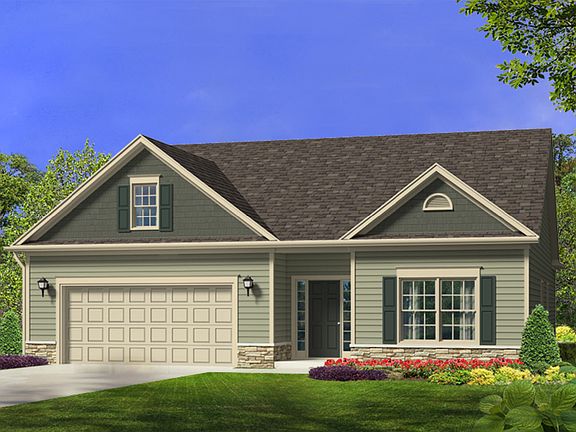 The Kinston is a spacious one-story ranch style home, with an open floorplan that features a family room, dining nook and kitchen with stainless steel appliances, granite counter tops, tile back-splash and large island. The oversized owner's suite includes a private bath and a walk-in closet. On the opposite side of the home, there are two additional bedrooms and secondary bath. The Kinston also features a laundry room, private rear patio, covered front porch and 2-car garage.
