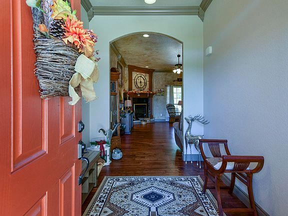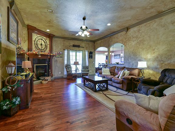 - Description: crown molding, ceiling fan, hardwood, fireplace