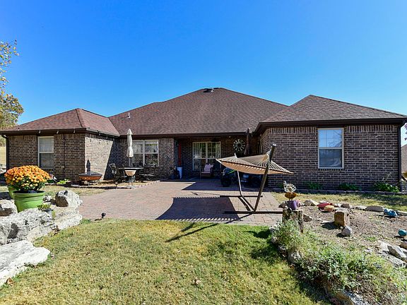 Classic comfort and the ease of single level living will greet you every day as the owners of this appealing 4-bedroom, 2-bathroom ranch house. Across the threshold, nice touches include hardwoods in foyer and living spaces and a cozy fireplace. The warm, inviting kitchen features nice appliances, granite counters, and breakfast bar. The tranquil master bedroom includes a spacious walk-in closet and private bath with jetted tub and walk-in shower. The other three bedrooms are unique and ready to reflect your good taste in decor. Utility room with newer washer & dryer and closet pantry conveniently sits between the kitchen and oversized three-car garage including storm shelter and access to the new water heater. You'll love the beautifully landscaped backyard oasis, partially fenced with storage shed and bonus playhouse! Conveniently located minutes from the Branson Landing and Lake Taneycomo, don't let this be the one that got away!