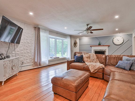 Are you looking for a peaceful, beautiful place? Look no further. This beautiful home is located in a 5-acre lot with 45 acres of conservation land behind it. The property features beautiful and open landscaped grounds, perfect for outdoor activities. From hosting summer barbecues to exploring your own private trails, the outdoor space is designed to accommodate your every leisure and recreational need. Additional building lot if the 5 acres were divided, Come see this for yourself!