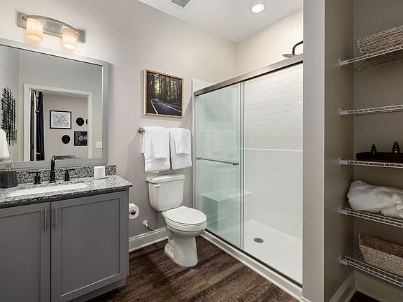 - Exterior features: 9-Foot Ceilings, Car Care Center, Electric Vehicle Charging Stations, Flooring: Concrete, Gooseneck Faucets, Granite Countertops, Moveable Kitchen Island in Select Homes, On-Site Community Management and Maintenance, Online Rent Payment, Outdoor Pavilion with Gas Grills and Firepit, Package Receiving, Pet Park, Pet Washing Station, Private Terrace or Balcony in Select Homes, Rentable Storage Spaces, Smart Home Key System, Spacious Closets, Spacious Floorplans, TV Lounge, Wood-Finish Plank Flooring