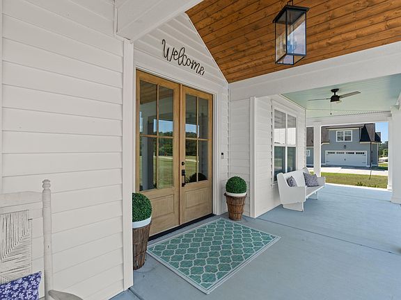 From the moment you arrive, the oversized front porch with rich tongue and groove ceiling sets the tone for the exceptional craftsmanship throughout. Inside, soaring lofted ceilings, a custom trim package, and elegant quartz countertops create a warm yet refined atmosphere. The spacious 3-car garage is complemented by an additional concrete parking pad — perfect for guests, trailers, or extra vehicles.