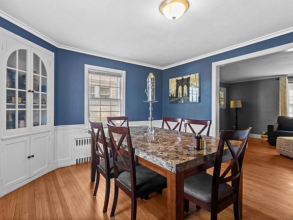 Welcome to 168 Hubbard Road - a charming 4-bedroom Colonial nestled in the desirable South End, just moments from the Wethersfield line and directly across from Goodwin Park. This home combines classic appeal with modern comfort. Step inside to a tiled foyer with double closets for added storage. The spacious living room is highlighted by a bay window, crown molding, and a cozy wood-burning fireplace, offering a warm and inviting atmosphere. The formal dining room features a built-in corner cabinet and a French door leading to the backyard, perfect for seamless indoor-outdoor living. The eat-in kitchen, alongside a convenient half bathroom and mudroom, provides easy access to the garage and outdoor space. The unfinished lower level presents endless potential, with a second fireplace, ready to be transformed into additional living space. The fenced-in backyard is an entertainer's dream, complete with a large deck ideal for gatherings and relaxation. Additional highlights include a high-efficiency natural gas heating system, central air, hardwood floors, and an attached one-car garage. This is a must-see home, offering both comfort and character in an ideal location