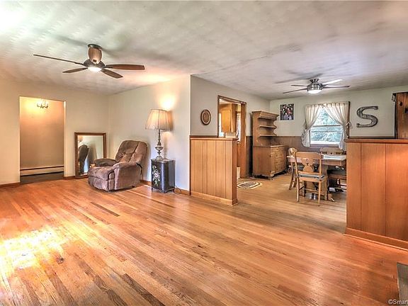 Move into your new home before the school year starts! Conveniently located in close proximity to parks, restaurants, groceries, and shopping, this lovely ranch features 3 bedrooms, 2 full baths, and a finished, walkout basement. Off the right of the front foyer is the large living room with beautiful stone fireplace and natural light flooding in from the bay window. Separated only by a decorative half wall with shelving on one side, the dining room is the perfect backdrop to host game nights and holiday celebrations! Create a culinary masterpiece in the kitchen featuring solid wood cabinetry, newer appliances, and good counter space. Down the hallway, find sanctuary in the tranquil master bedroom suite featuring an updated shower with bright white tiles. Rounding out this level are two well-appointed guest bedrooms and a large hall bathroom. Need a bonus area for a home office, gym, or playroom? Head downstairs to the beautiful, newly renovated, walkout lower level. This great space connects with a large furnace room which is perfect for your next workshop! Enjoy the sights and sounds of nature from your deck or the wonderful level property which backs up to Great Oak Park, 69 acres of preserved land featuring walking trails and a boardwalk. There is a large paved driveway and two-car garage which opens at the back of the house. Newer roof, boiler, and water heater! Efficient gas heat! Great Trumbull public schools!