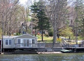 One of a kind lake house on Quaker Lake. Mint Condition Circa 1906. Sited on approx. .5 acres with 80 ft.lake frontage & over 1000 sq.ft of decking. Completely refurbished over past 15 years. 2 Story stone FP with woodstove insert . Large walkup attic could be 2/3 more bedrooms. Beautiful Hdwd Flrs. House roof 2011. Cabana offers Kit,LR,Bdrm,& Bath. Sail boat, cabana furniture & generator include.