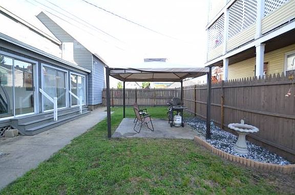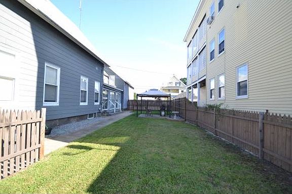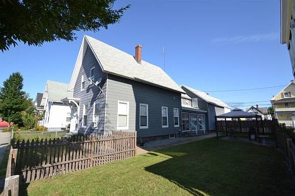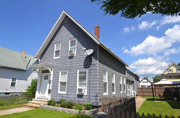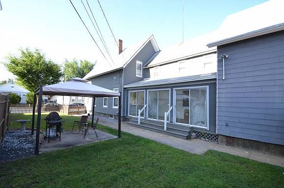 Updated In Town 3/4 bedroom New Englander featuring remodeled eat-in kitchen with tile floor and wainscoting, beautiful dining room with hardwood floor, large living room with hardwood floor, stunning 1st floor full bath with tile shower surround and floor and glass vessel sink, front foyer with tile entry and wainscoting, spacious master with plenty of closet space, 2 more bedrooms plus 2 other open rooms on 2nd floor could be family room or 4th bedroom and office, updated 2nd floor full bathroom and enclosed porch/sunroom overlooking fully fenced yard with patio with canopy all on a lovely landscaped lot with off street parking and 2 car garage with bonus room on second level. Many recent updates include new boiler, blown in insulation and replacement windows.