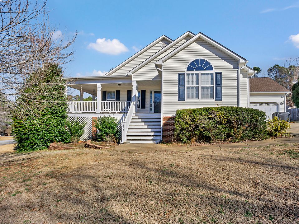 Beautiful ranch home with wrap around front and back porch and a HUGE fenced-in yard! This home features wood floors throughout and a bright, open floor plan. Vaulted family room flows into a centrally located formal dining area. Kitchen offers a center island and breakfast nook. Spacious owner's suite with large walk-in closet plus generously sized secondary bedrooms. Enjoy outdoor living on the backyard patio with fire pit—perfect for entertaining. Major updates include roof and HVAC. Move-in ready and a must-see!