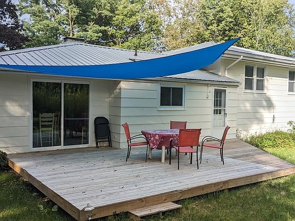 A sweet, classic tri-level home offers the perfect blend of modern amenities and classic charm. Nestled on a hill 100 ft from the road, this fully renovated ranch offers a well-designed floor plan, a lake view, and is just a short distance to the beach and town. On the main floor, you will find the eat-in kitchen which leads to a spacious living room offering lots of natural light and a close hearth wood fireplace that adds character and warmth to the space. Both the kitchen and living room open to a deck and a private backyard. There are hardwood floors throughout the home. Three bedrooms with lots of closet space and storage, plus a full bath complete the third floor. A great feature of this home is the finished basement, with a free-standing working wood stove and built-in bar offering the perfect spot to gather around. Some recent updates include a new metal roof, painted siding, and a heat pump system. Please park on the Main road, do not drive up.