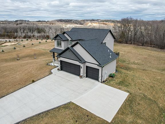 Over 4 acres this 2-story home offers an open floor plan. The kitchen offers a pantry, stainless steel appliance, gas stove, kitchen island. The dining area offers a patio door walkout to the large 30X14 deck that offers lots of room for entertaining or just relaxing & grilling after a long day. Inside snuggle up to one of the two fireplaces located on the main floor living or lower-level family room. The main floor also offers an office & main floor laundry. Adventure to the lower level and enjoy the finished walk out basement, family room with wet bar, media room or exercise room (4th bedroom). Off to the upper level where the primary suite awaits, your own private bath, dual sinks, walk-in tile shower & your very spacious walk-in closet. The upper level also offers; 2 bedrooms & a full bath. This home offers so much space inside and out! A must see to appreciate all it has to offer with the magnificent location being within 15 mns of downtown Rochester & having the country living.
