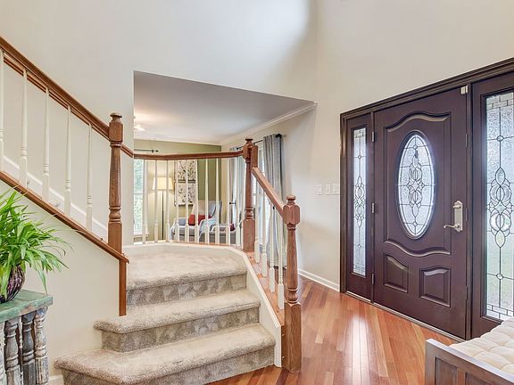 Welcome to this stunning 4-bedroom, 3 bathroom home nestled in the desirable Hunters Ridge neighborhood on a quiet cul de sac. . As you step through the front door, you'll be greeted by the grand 2-story foyer, setting the tone for the elegance that awaits. The front living room offers a perfect space for relaxation, while the beautifully updated kitchen boasts modern stainless steel appliances and an inviting eating area. From here, step outside to the beautifully landscaped patio and backyard, a serene retreat for outdoor gatherings. The open floor plan seamlessly connects the kitchen to the family room, complete with a cozy fireplace, making it ideal for entertaining. Upstairs, you'll find the spacious master suite with a walk in closet and a private full bath, offering a peaceful sanctuary. Three additional bedrooms on the second level share a well-appointed hallway bathroom. For added living space and versatility, the nicely sized finished basement with powder room provides endless possibilities. With its spacious rooms and fantastic layout, this Hunters Ridge home is perfect for those seeking both comfort and style. Solar panels and new windows offer additional home savings! Don't miss the opportunity to make this house your forever home.