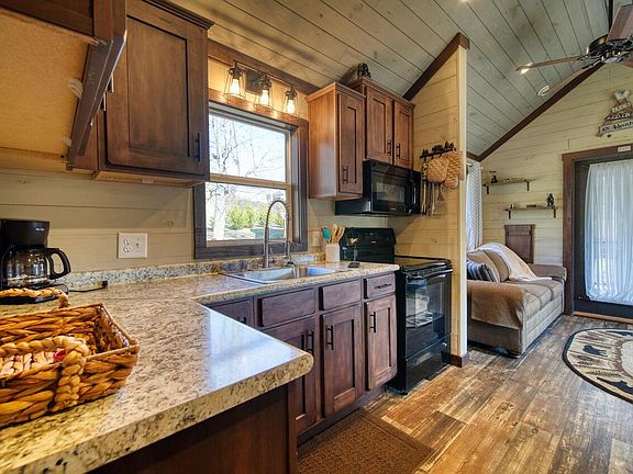 ADORABLE CREEKFRONT TINY HOME!!! Located in the small home community of Maple Springs just North of Downtown Clayton & near Black Rock Mountain State Park, this 1br/1ba park model is all you need for minimal living or a mountain getaway. Maintenance free hardi-plank siding, metal roof & level yard make this property easy to maintain. Interior features of this cozy home include wood interior w/ mix of sheetrock, high ceilings, wood cabinets, kitchen & living area w/ laundry, & extra sleeping space in bunk area. Bedroom has high ceilings & built in storage. Heat/Cooling system is operated by 2 mini-splits. Electric water heater in place but on-demand tankless could be reconnected. City water & sewer. Sold partially furnished.