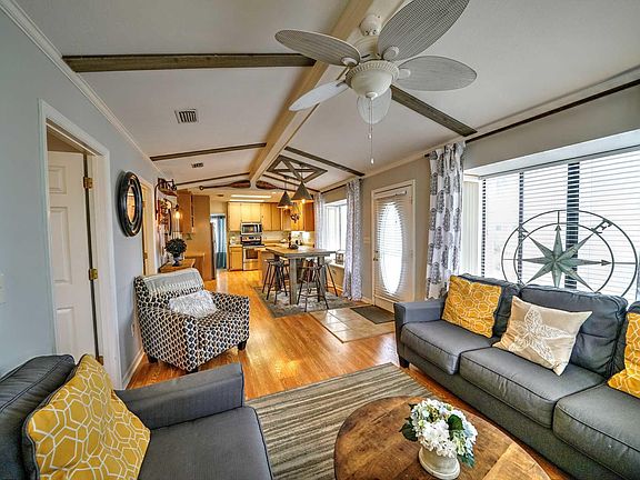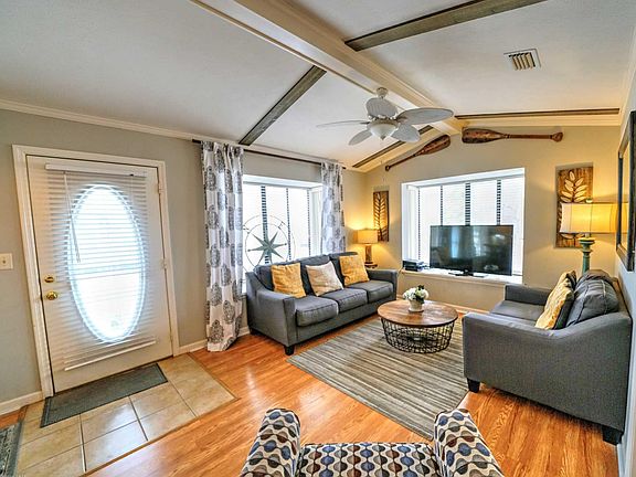 Fantastic opportunity to own a great Venture Out home on a corner lot. This 3 bedroom 2 bath home is spacious and has a great open feel! Owner's have recently added a new roof and this home is in a fantastic location within the resort. Spend your afternoons lounging on the large front porch and grilling your fresh catch of the day. Venture Out is a golf cart community that has 300' on the beautiful pristine beaches of the Gulf of Mexico and 1,000' on the Grand Lagoon. Venture Out has something for everyone. With two pools, fishing pier, boat ramp, mini golf, children's play ground and much more!