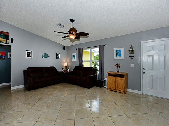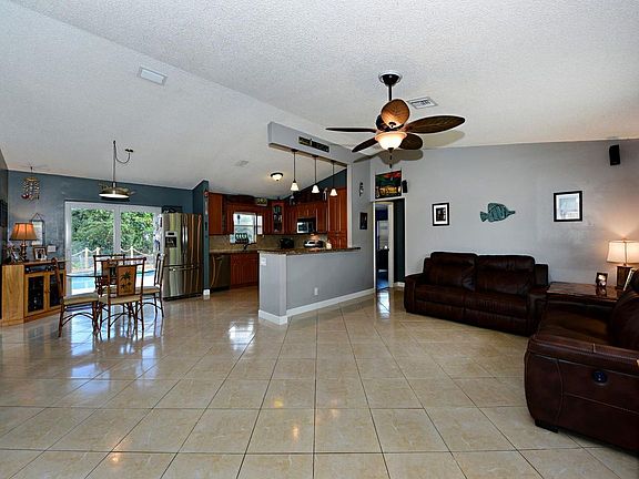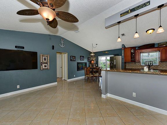 Nice clean home in the Willows, with no HOA, and on a navigable canal! This 3/2/2 has ceramic tile, and plank wood look tile - no carpet! Newer kitchen with granite counters, stainless appliances, cherry cabinets, and a snack bar. Impact windows and doors throughout. The double sided 90 gallon aquarium is seen form the eat-in kitchen and second bedroom. Enter the pool patio area, complete with a beach/sand box, and raised wooden deck. All fenced, and looking out to the canal. The metal roof is just 5 years new.More amenities include tankless water heater ( 2015), new sprinkler pump 2018 (from canal), an 8 camera security system, and a safe in the master closet.Pride of ownership shows in this home!