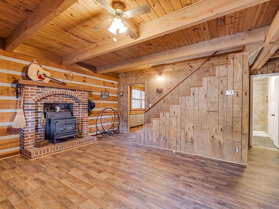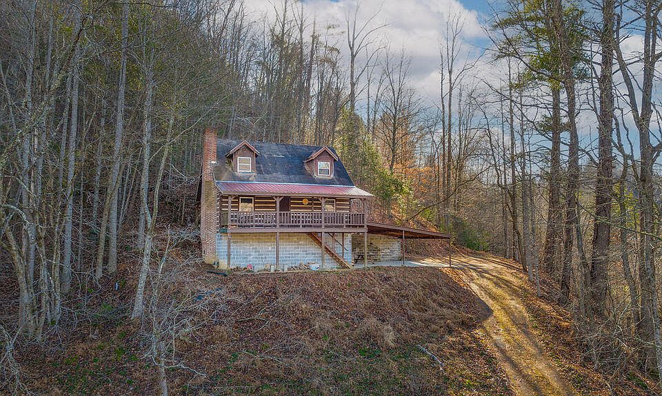 Peaceful 3-bedroom cabin nestled in the woods. This lovely cabin offers 2 bedrooms, remodeled full bath, kitchen, LR with fireplace, covered front porch, and back patio on the main level. Upstairs is a 3rd bedroom (currently not pictured as it is getting a fresh coat of paint and carpeting is being removed) that would make a great primary suit with room for walk-in closet and a full 2nd bath if buyer decided to put on in. The full unfinished basement is great for storage and there is a covered carport area as well. This location is convenient to kayaking, tubing, and hiking, tons of waterfalls nearby, fiberoptics internet, and convenient to amenities yet tucked away. Buyer to verify all info.