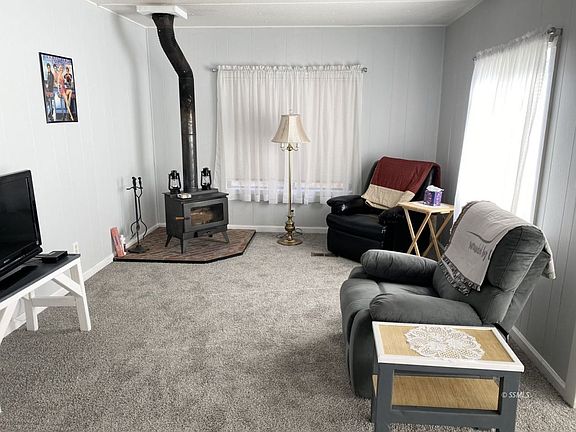 This absolutely adorable singlewide has 576 sq ft with one bedroom and 1 full bath and comes furnished!! A two car awning for parking, fenced front yard for gardening or your fur babies. There is an addition with almost 200 sf making a total of 750 sf approx. Addition has lots of windows and a view of the lake. There's a wood burning stove in the living room. A must see!