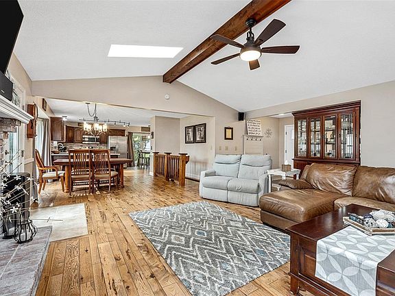 This home offers so many things that you can check off your list - open floor plan, gorgeous floors, neutral decor, nice updates that just starts the list. Updated entry door, coat closet, fantastic vaulted great room, skylights, wood floors, gas fireplace. Open dining, kitchen & breakfast rm offers a setting that allows everyone to share conversation in the same gathering space. Stainless appliances, custom backsplash, Quartz counter tops, pantry, bay windows, 6 panel doors & so much more. Wood flooring adds to the charm & character. The owners suite offers barn door entry to the beautiful updated bath, dual sink vanity, walk in closet with organizer. Bedrm 2 with box bay window & walk in closet, bedrm 3 with box bay. Finished lower level with rec rm, family rm & sleeping rm plus full bath. A level yard, plus a nice sized patio for grilling & entertaining. The subdivison offers a pool and clubhouse - it's like having a vacation resort nearby - gives you a great way to enjoy the summer