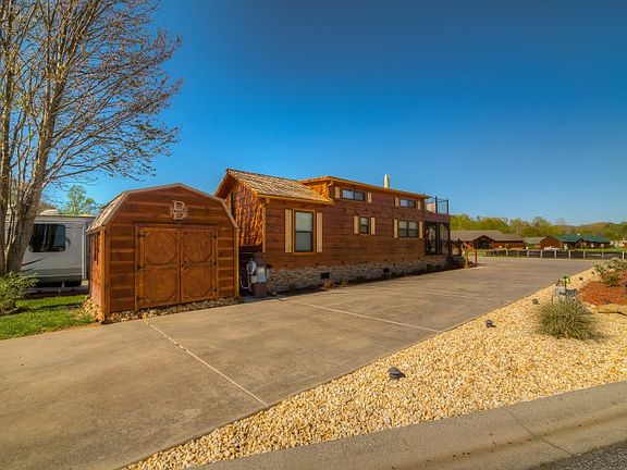 Why pay for big when you can own the ultimate cabin in the upscale Crossing Creeks RV Resort & Spa that will suit your lifestyle! Resort features a spa, sauna, fitness center, clubhouse to host parties or attend various events, trout streams for the fisherman, salt water heated pool, tennis & it's own onsite laundry facility. This is a Green River Log Cabin (Stargazer model), extensive energy efficient LED lighting outside, over $10k in landscaping, new insulated shed, security camera's, pull thru RV parking & a large sky deck to enjoy the mountain views. Good things do come in small packages. Take time to see this place .