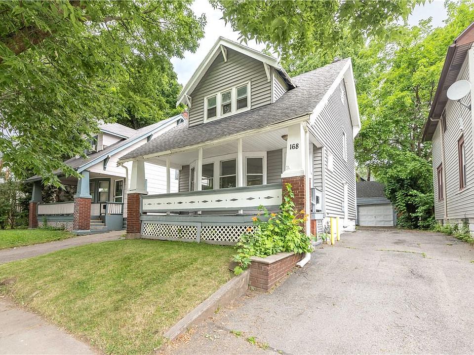 A Craftsman is calling and how can say no to a bungalow? The original open floor plan awaits! Open front porch, open living dining area and kitchen complete the first floor. 3 bedrooms and a bath upstairs and a nice basement for your exercise or craft needs. Plenty of room in the garage for your gear!