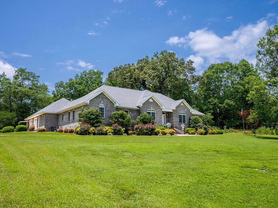 Beautiful brick home featuring 3BR (2 are master suites) 3.5 BA,Lg open concept living area, All 1-level, XL 2 car garage w/lg storage rm, 4+/- ac., Matching custom cabinetry thru-out, Office/library, A finished storm room inside home,New roof in 2023,Both ac units new in 2022, 40x50 heated & cooled shop w/full bath, 50x60 pole barn, Engineered floor joints, Lg covered patio. Too much to mention.