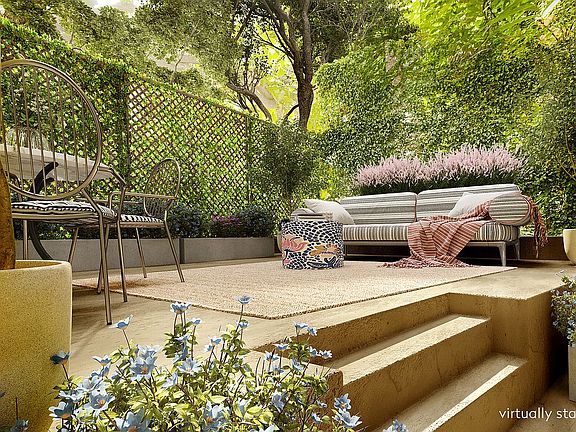 The first floor is a 1 bedroom, 1 bathroom apartment with access to a quiet and lush garden surrounded by trees; it's a peaceful place to disappear from the hustle and bustle of NYC. Previously, this space was an art gallery so with this residential building having a commercial overlay, there can be another opportunity for a live work situation.