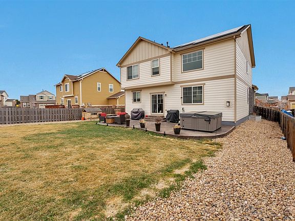 wonderful 4 bed 2 story home in Adonea. great location in neighborhood. all 4 beds on upper level. study on main floor with built-in desk and shelves, roomy 3 car garage, formal dining room, large living room with two story ceilings, updated water-resistant flooring throughout 90% of main floor, beautiful custom stamped concrete patio and large fenced yard, great for entertaining. Every bedroom has a bathroom attached with bedroom 2 and 3 sharing a jack and Jill bathroom. Bedroom 4 has its own private 3/4 bath and of course the master suite has master bathroom with over-sized shower and dual shower heads one being a rain shower. location is just block away from the community clubhouse and pool. Energy saving solar panels! A perfect family home! BACK ON MARKET, BUYER COULD NOT QUALIFY. APPRAISAL CAME IN OVER LIST PRICE. BRAND NEW FURNACE !!