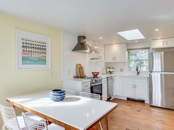 Imagine yourself in this gorgeous, renovated beach house, close to private beach and access to Scorton Creek for kayaking and paddleboarding! This gem offers an open floor plan with a sun-filled kitchen boasting new cabinets and quartz countertops. The living area contains hardwood floors, a wood-burning fireplace, and a slider to the patio. Two bedrooms and triple bunk beds provide plenty of space for friends and family! Further comforts include a full bath with laundry plus a refreshing outdoor shower. Overlooking a fantastic common area perfect for outdoor fun and lawn games, this adorable cottage is also convenient to historic Sandwich village with its fantastic shops, restaurants, museums, bike paths, and ice cream shops. Truly, a slice of heaven!