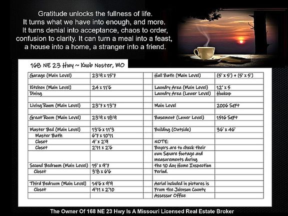 SOLD JULY 2020 appraised for $285,000 ~ Need more room? The 2020 Social distancing was easy on this 4.3 acres. Come out this newly remodeled home with extensive upgrades & updates. This move-in ready ranch style home including a 36'x46' building 1)Home is located on 4.3 acres in front of paved with easy access to US 50 Hwy, Whiteman Air Force Base MO, and the Knob Noster State . 2)This sprawling ranch has 2006 SqFt living area on the main floor plus a 1516 SqFt unfinished basement. 1979 Custom built has 3 bedrooms, 2 full baths 3)Home has new paint, new flooring, new granite counter tops, new sidewalks, new landscaping rock, and gravel. 4)Walnut paneled recreation room has space for a pool table and shuffleboard table. 5)Updated bathrooms include a new shower, granite vanity tops, special lighting. 6)Laundry hook-ups are in the basement and main floor so you can decide the location to place your washer & dryer. 7)Kitchen includes walnut cabinets, granite floors, Jenn-Aire stove/ grill, built in dishwasher, garbage disposal. New granite counter tops with lots of prep space. 8)Walnut paneled recreation room has space for a pool table and shuffleboard table. The walnut paneling is in style and googling the new cost is $41 a sheet. 9)Hallway is 4’ wide. Majority of the interior doors are 3’ wide. 10)Updated / remodeled baths included a main floor laundry closet. 11)New interior doors and trim boards. 12)New upgrade Schlage brand, Bowery style entrance door knobs and handles. 13) Fresh New painted walls (SW Repose Gray), ceilings, 14)New paint in garage/floors and basement walls/floors 15)New light fixtures and many upgraded ceiling fans throughout the home. Upgraded electrical outlets and switches. 16)New front concrete step & front sidewalks 17)New in ground gutter drains with new exterior sump pump. 18)There is an attached oversized garage for your vehicle and 2 motorcycles. 19)In addition, there is a barn / building measuring 36'x46' with approximately 75% concrete floor, 220V electricity and . Near the building there could be a connection for waste drain for a RV trailer. 20)The backyard has a chain link fence for child and pet safety. 21)Mature trees provide shade and landscaping. Pasture woven wire fences with steel posts surround approximately 75% of the pasture. 22)Garden to table food and plenty of room for multiple gardens! Raise your own horses, cows, goats, with plenty of room. 23) The 2019 Real Estate Taxes were $1017. Outside city limits. 24)Knob Noster Ranks in the top 3% of high schools in Missouri. Rated #1 in the Missouri rural districts. 25)One Year Home Warranty of $550 is included with owner paying $2500 of the buyers prepaid/closing costs. 26)Vivian J Draper owner of 168 NE 23 Hwy is a Missouri licensed real estate . Shown by appointment (660)909-8777