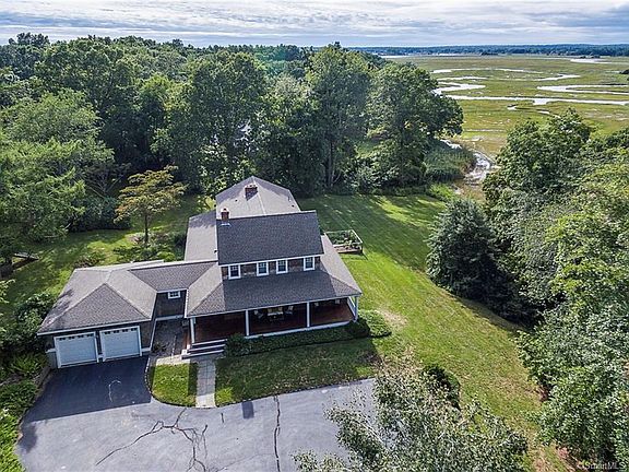 If you're looking for a home that's great for entertaining family and friends, you've come to the right place Remodeled in 2001, this 4 bed 4 bath home has sweeping views of the East and Neck River marshes. It's a private retreat where you'll view nature at its best. This chef's kitchen is equipped with cherry cabinets, large center island with second sink, stainless appliances, 2 convection ovens, warming drawer, and 2 dishwashers. In the family room, which opens to the kitchen and dining room, you'll love the warmth of the Rumsford wood-burning stone fireplace with cherry cabinet surround. Three covered decks all have mahogany flooring, including the screened-in porch overlooking a private yard with dramatic sunset views. The living room has built-in bookshelves, a 2nd fireplace, and a large window taking advantage of expansive views. Upstairs, there are 4 bedrooms, with 2 en-suite bathrooms. The master bedroom has two sinks, a tiled shower and a large tub. The laundry room is also on the 2nd floor. In the lower level, there's room for everyone's needs. There are two recreation rooms on the walk out level. The first room has a wood burning fireplace and sliding door to the outside, the second rec room has a wall of windows, great for a home office or artist studio. Great features include natural gas heat, city water, a new furnace, central air, a whole house generator, a 2 car garage, plus a detached 1 car garage. Located south of route one close to town & beaches.