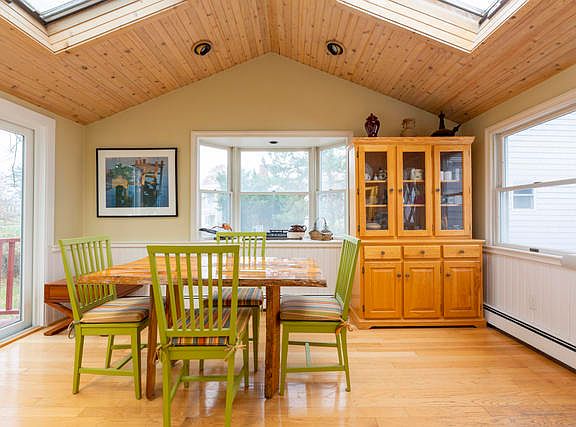 Charming Antique Colonial house with Barn, circa 1850, situated on nearly 14,000sf lot. Spacious updated home, which is warm and welcoming. Large living room with efficiency wood burning fireplace, updated kitchen with granite counters and stainless steel appliances. Dining room with sliders to balcony overlooking large yard and mature trees. Skylights in kitchen and dining room allow plenty of sun light. Main floor also features access to deck and a first floor bedroom and bathroom. Two more bedrooms and full bath upstairs. Both bathrooms are updated. Extra space in walk-out basement with expansion potential. This house comes with a delightful 29x19 barn with electricity, perfect opportunity for AirBnB, artist studio or workshop. Fenced-in and flat yard has flowering fruit trees, garage parking, plus ample outdoor parking. Convenient location with easy access to I-95, VFW Parkway, close to Cutler Park, Millenium Park, Legacy Place, Dedham Mall, steps to school.