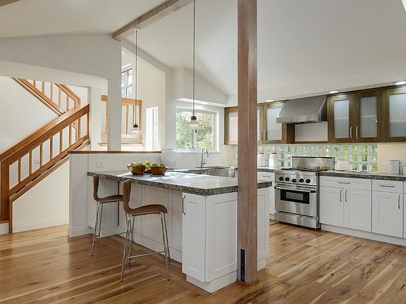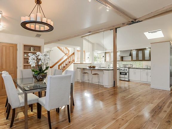 Sun-swept expanses of level lawn, beautiful creek-side wooded views, and a non-through street for added privacy this is the essence of Woodside. Plus, the location is just one mile from Woodside Village, with acclaimed Woodside School, and direct hiking trail access is by the creek or at the end of the street. Extensively remodeled, this solar-powered home is open and bright with refinished solid hickory floors, extra-thick honed granite counters, and numerous skylights. Along with 4 bedrooms and 3 baths, there is a separate family room plus a dedicated office. The lower level is perfectly arranged for separate living quarters, if needed, and there are wonderful outdoor venues for play, including a synthetic level lawn, custom tree fort, and climbing wall. Truly a wonderful place to call home in one of the most sought-after towns in the Bay Area midway between San Francisco and Silicon Valley.