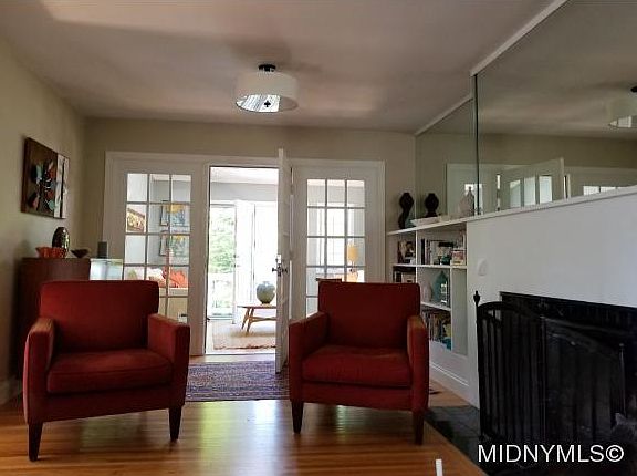 An Art Deco house that is completely updated. A delightful open floor plan with large fireplace in LR W/French doors to all season vaulted sunroom. Many updates include: Roof, Heating, Windows, New Kitchen and Bath. All Hardwoods refinished. Back deck with lovely gardens and pond. An unusual home in a fabulous location.