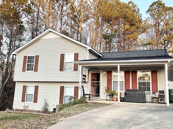 Cul de sac lot, charming split level with updated flooring, new kitchen cabinets, counter tops, sink and faucet. There are 3 bedrooms and 2 fully renovated bathrooms, a full finished basement with extra storage space and laundry room, there is outside access to the basement as well as inside stairway to the basement. Pretty front porch for sitting and sipping, back patio for cookouts and custom built outbuilding! New 2 inch blinds on all windows. Septic pumped within past 2 years.